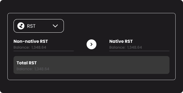 Note: You have the option to bridge RST and RIO tokens between native and non-native tokens by selecting the token on the dropdown and setting the conversion.